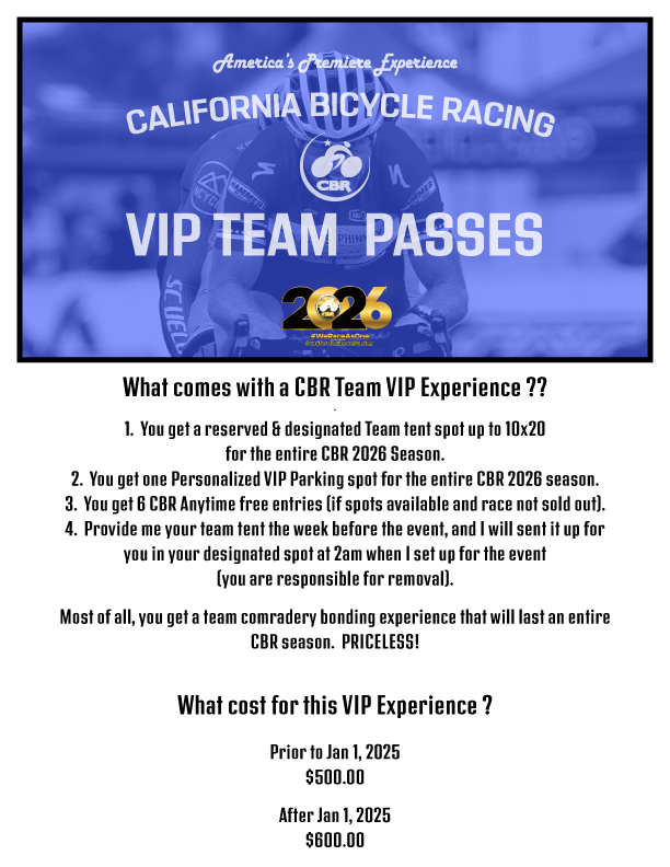 Has been around racing for the last 30+ years. He is an educator full time and brings his love and passion of cycling to CBR. You can find him running around making sure everyone is having a great time!